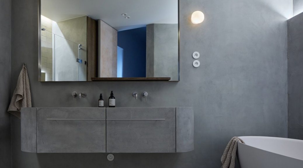 ¿Cuál es la tendencia actual en baños de color gris en el diseño de interiores naturalistas?
