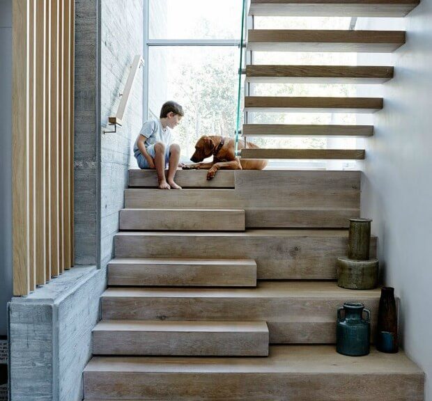 En una casa naturalista, se pueden utilizar materiales como madera, piedra y bambú para construir escaleras.